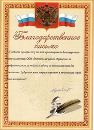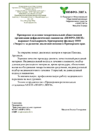 Благодарность от Мавшенко Эльвиры Геннадьевны председателя Приморского регионального отделения МООНП «НЕФРО-ЛИГА»