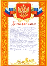 Благодарность от всей семьи Макаровой Зинаиды Федоровны администрации амбулаторного диализного центра в г. Назарово.