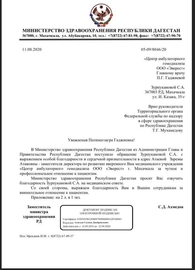 Я Ахмедова Хадижат супруга вашего пациента. Мой муж на протяжении 12 лет ходил на гемодиализ г. Махачкалы. Сначала РКБ потом «Эверест» на ул. Танкаева, к сожалении он умер недавно. Я хочу выразить благодарность Зав. отделением Гаджиева Патимат Гаджиевне! За ее профессионализм, сердечную теплоту, добросовестное исполнение своих обязанностей и доброе отношение к своим пациентам! А так же выражаю благодарность Мадине Джалалхановне и Лейла Билаловне и вес коллективу врачей, а так же благодарю млад. мед персоналу за знание своего дела, за умелые ручки, внимательность и чуткость!